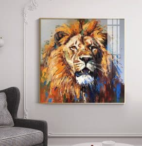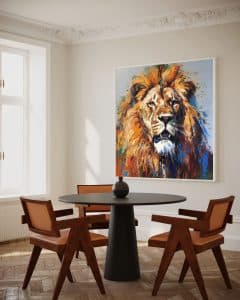 תמונת קנבס מרובעת "אריה אציל" בצבעים עזים