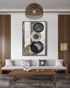 תמונת קנבס לסלון בסגנון גאומטרי "איזון מעגלי"