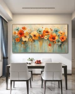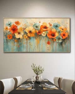 תמונת קנבס "פרחי החמימות בגווני טורקיז וכתום"