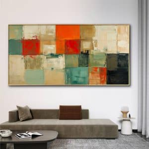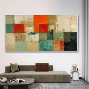 תמונת קנבס לסלון בסגנון גאומטרי "פסיפס כתום"