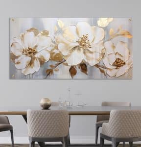תמונת זכוכית "פרחים מזהב" – עיצוב תלת-ממדי אלגנטי
