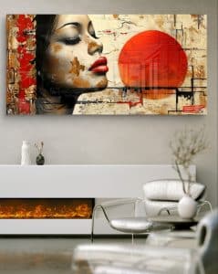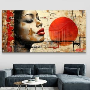 תמונת זכוכית "דיוקן השמש" – פורטרט נשי מופשט בעיצוב מודרני