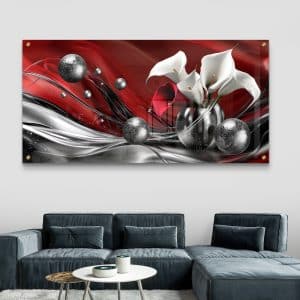 תמונת זכוכית "קומפוזיציה מופשטת בפרחים וכדורים
