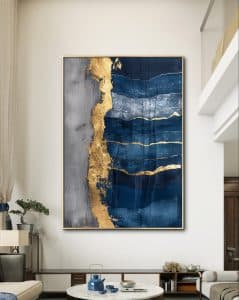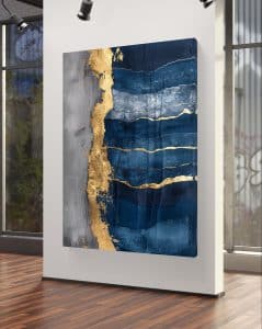 תמונת קנבס לסלון "מופשטת בגווני כחול וזהב"