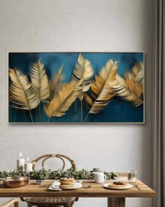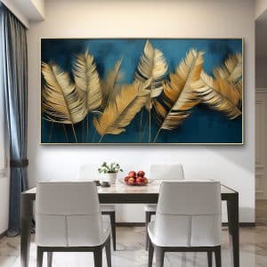 תמונת קנבס "עלים זהובים על רקע כחול"