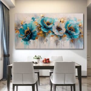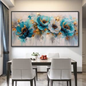 תמונת קנבס לפינת אוכל "פריחה בטורקיז"