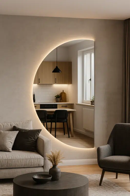 - שילוב עם ריהוט: הנחת מראה מעל קומודה או ליד ארון יכולה לשמש לשילוב פונקציונלי ועיצובי.