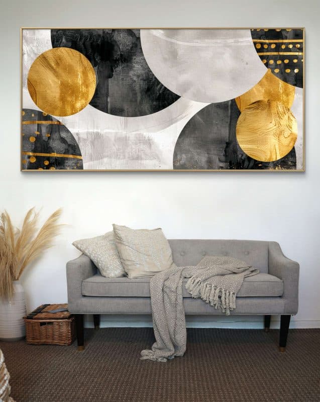 תמונת קנבס גיאומטרי זהב שחור – "מגע של יוקרה"