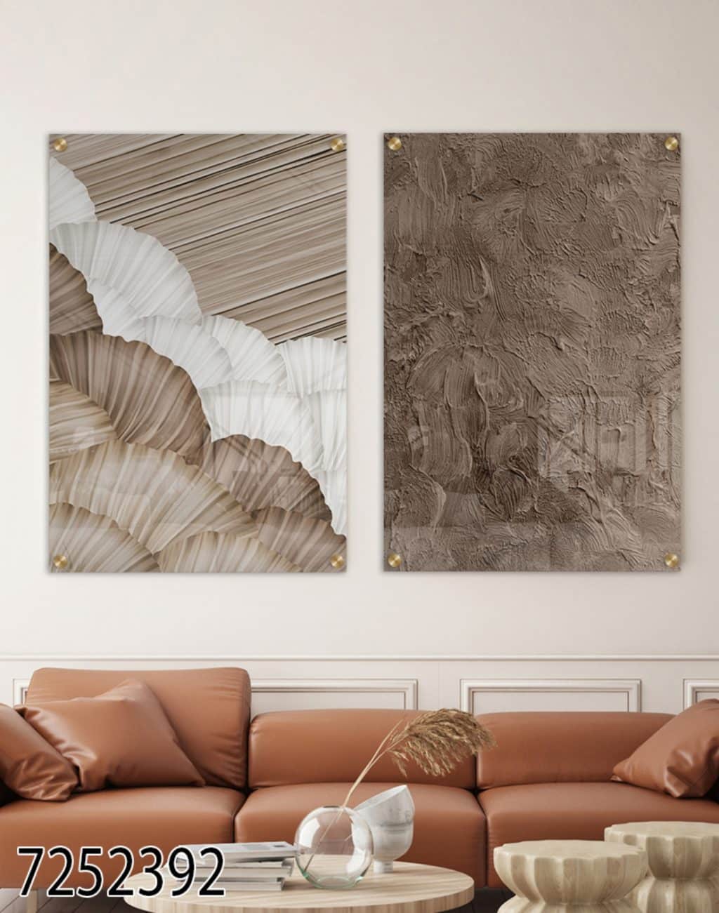 זוג התמונות "חול וטקסטורות" מייצג את השקט וההרמוניה של הטבע במלוא הדרם. העיצוב המופשט בגוונים רכים של חום ולבן משרה אווירה רגועה ומחברת כל חלל לעולם הטבע. כל אחת מהתמונות מציגה טקסטורה עדינה שמזכירה תבניות של חול וגבעות, דבר שמוסיף עניין ויזואלי וממד עומק. התמונות מיוצרות מזכוכית מחוסמת בהדפסה ישירה באיכות גבוהה, דבר שמבטיח עמידות לשנים ארוכות וברק יוצא דופן.