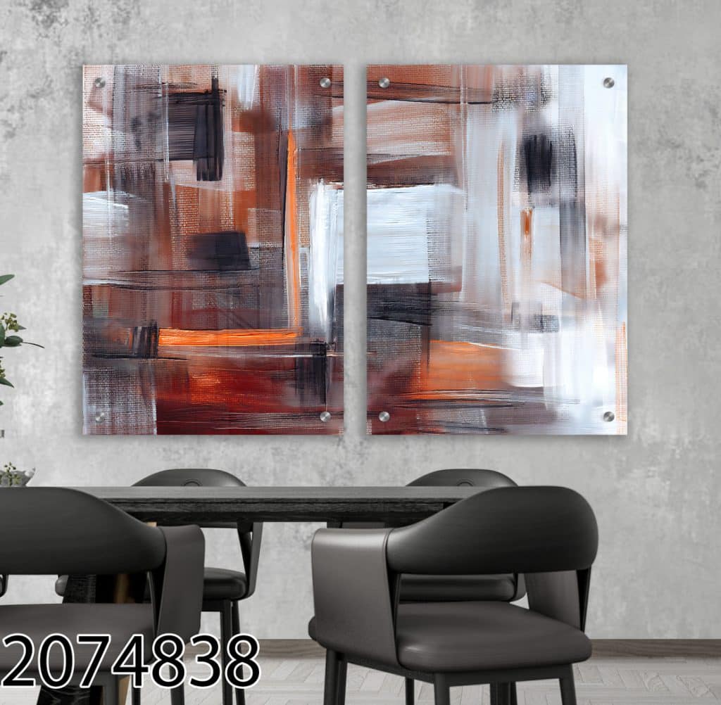 זוג תמונות זכוכית אומנותיות "צבעים חמים במופשט"