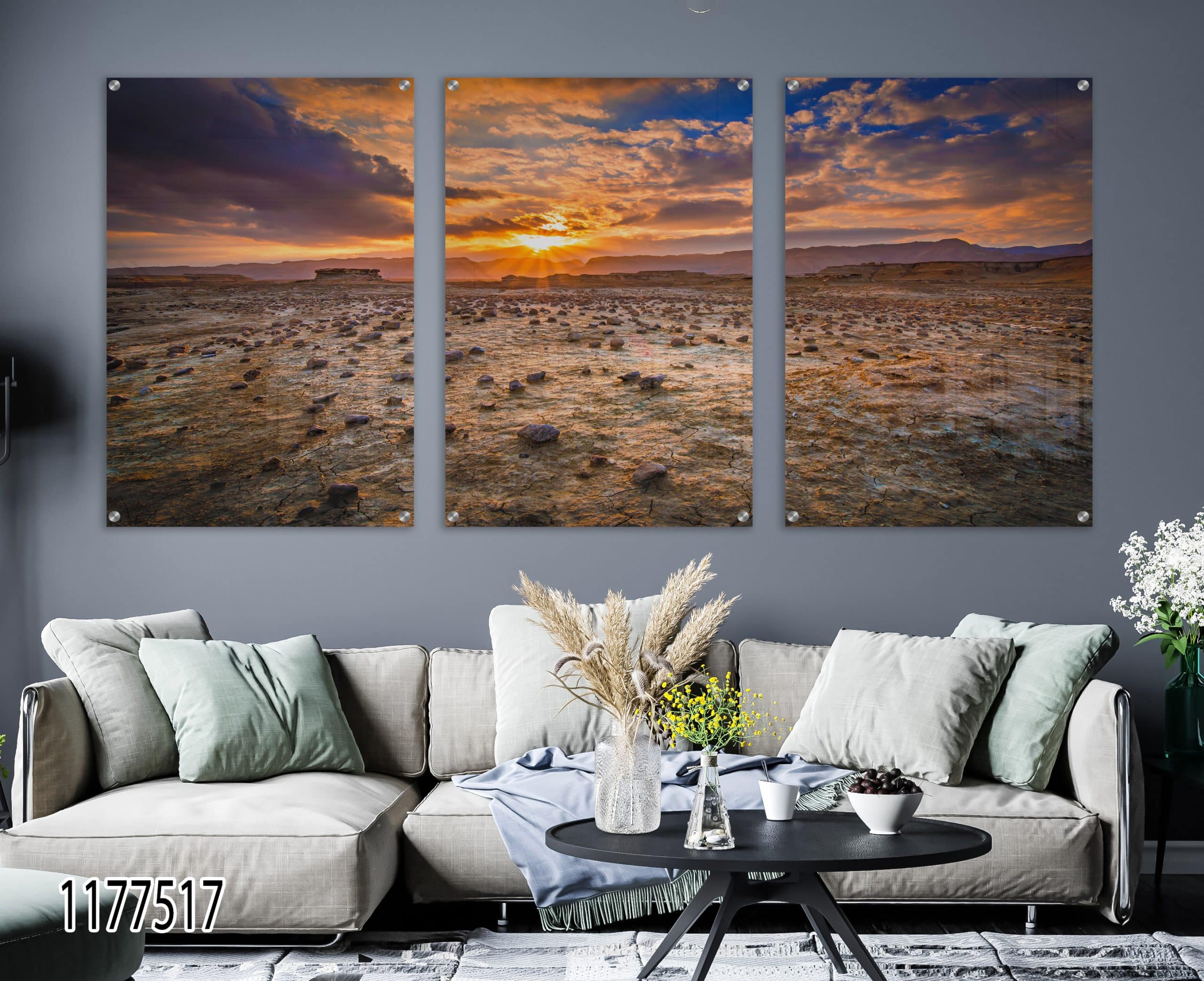 היכנסו לעולם של יוקרה ואסתטיקה עם שלישיית תמונות זכוכית המציעה נוף מדברי מרהיב ביופיו. צבעים חמים כמו שמנת, אדום וכתום משתלבים ליצירת אווירה של רוגע ותחכום. מתאים לסלון, חדרי שינה או משרדים. כל חלל מקבל מגע יוקרתי ומיוחד, והופך למרכז תשומת הלב.