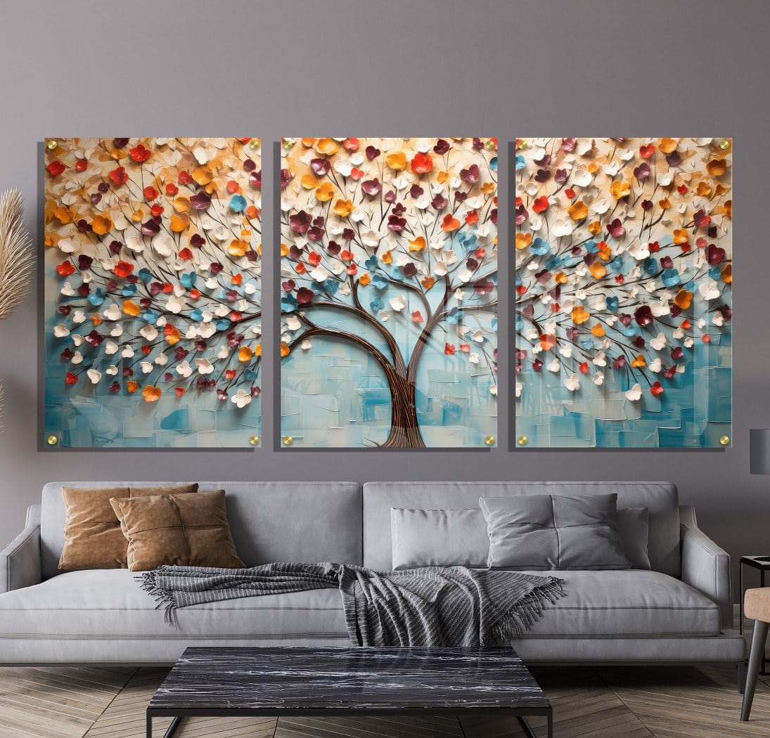 הוסיפו עומק ואופי לחלל עם שלישיית התמונות "שלכת צבעונית", המודפסות על זכוכית באיכות הגבוהה ביותר. הדגם משלב בתוכו סגנון גאומטרי מודרני עם גוונים חמים של שמנת, אדום וכתום, היוצרים תחושת חמימות ורוגע. התמונות מתאימות במיוחד לסלון, לחדר עבודה או למשרד, ומוסיפות נופך של יוקרה ותחכום לחלל. המראה הזכוכיתי הייחודי משדר ניקיון ואלגנטיות, והצבעים הבולטים יוצרים תחושת חיות והתחדשות.