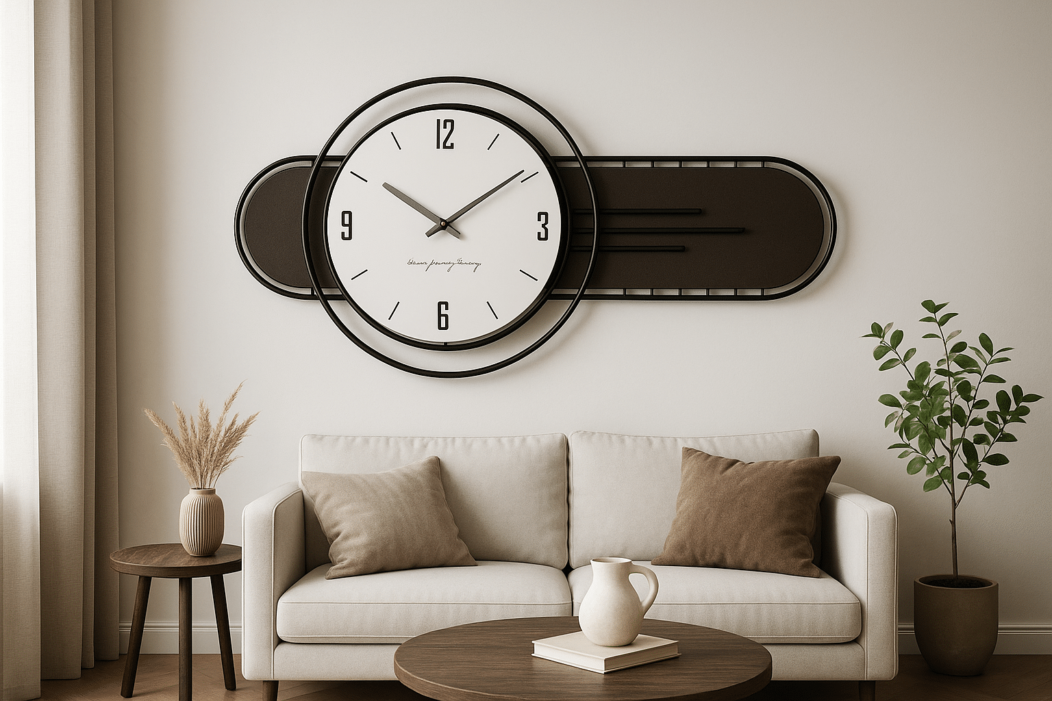 עיצוב השעון משתלב בצורה מצוינת עם חללים המעוצבים בסגנון מודרני ומינימליסטי, אך גם יכול להוסיף ניגודיות מעניינת לחללים קלאסיים יותר. השימוש בצבעים כמו כתום, אפור וכחול יוצר תחושה של חום ונועזות יחד, ומוסיף מימד אמנותי לכל קיר שעליו הוא תלוי.