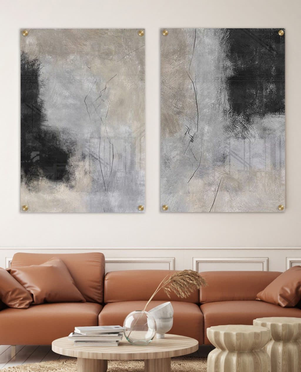 זוג התמונות "ערפל אורבני" מביא עמו עיצוב אבסטרקטי שובה לב בגווני אפור, שחור ובז', ומשדר מראה מתוחכם ומלא עומק. קווים עדינים המצוירים על רקע מעורפל ורך מוסיפים מימד של תנועה ועניין, מה שמדגיש את השקט והניקיון של המראה הכולל. הזכוכית האיכותית על גבי התמונות מדגישה את הצבעים ומעניקה ברק קל שמחמיא לעיצוב הפנים המודרני.
