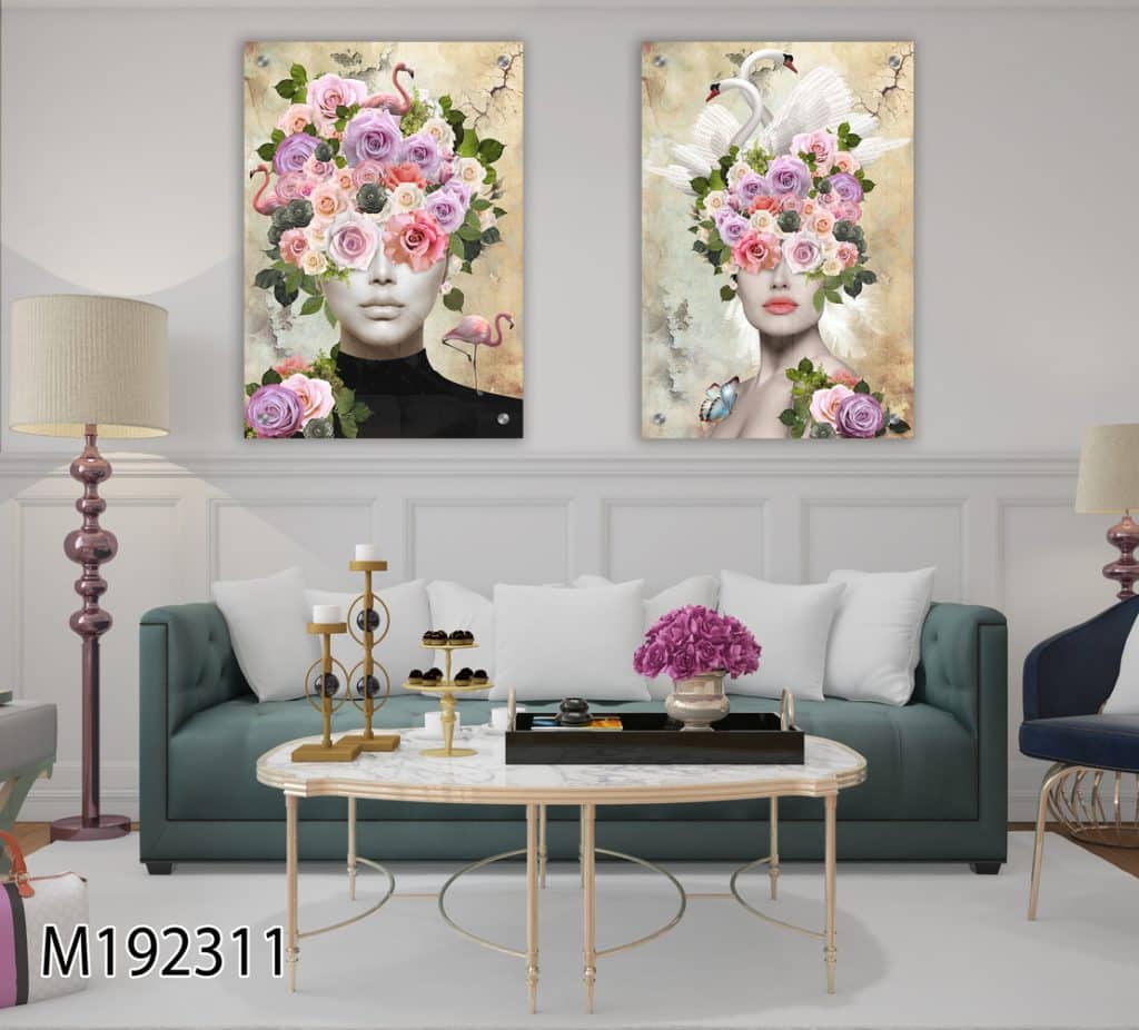 התמונה "פנטזיית הפרחים" מציגה דמויות נשיות אלגנטיות המעוטרות בכתרים של פרחים צבעוניים, לצד פרטים מרהיבים של ברבורים ופלמינגו עדינים. השילוב הקסום בין האלמנטים הטבעיים והדמויות המסתוריות מייצר נופך של פנטזיה ורומנטיקה. הצבעים הרכים והמונוכרומטיים ברקע מחזקים את תחושת הרוגע והשלווה. התמונה מודפסת בטכנולוגיית 4K על זכוכית מחוסמת בעובי 6 מ"מ, ומגיעה עם אביזרי תלייה-צפה להענקת מראה מרחף ומרשים. מתאימה במיוחד לחללים המעוצבים באווירה רומנטית ומזמינה, כגון סלון, חדר שינה או פינת ישיבה.
