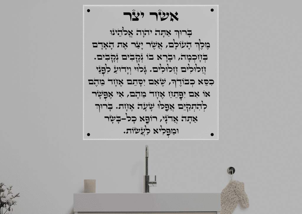 להצטרפות עכשיותמונת זכוכית "ברכת אשר יצר" – עיצוב שחור-לבן מודרני
