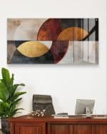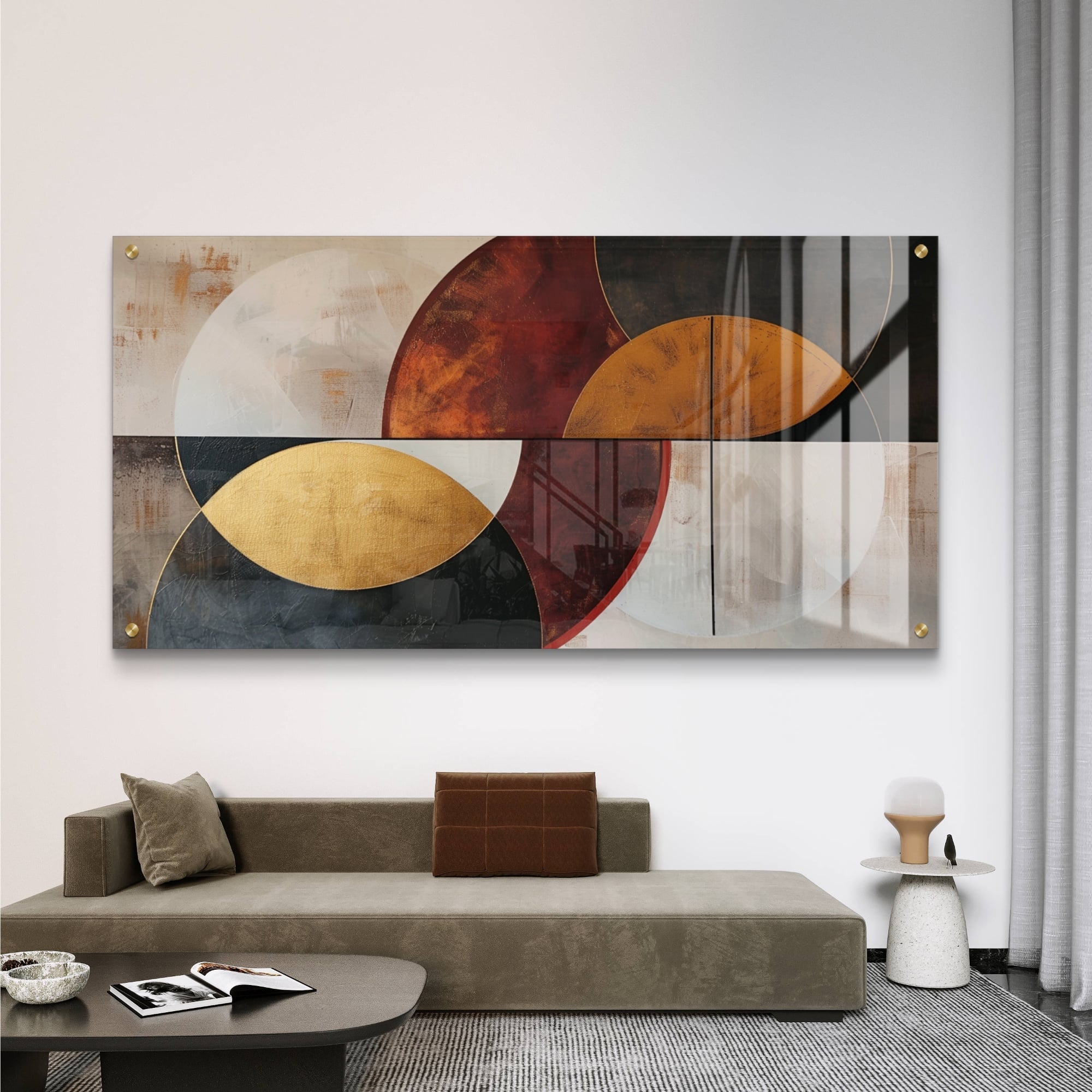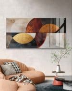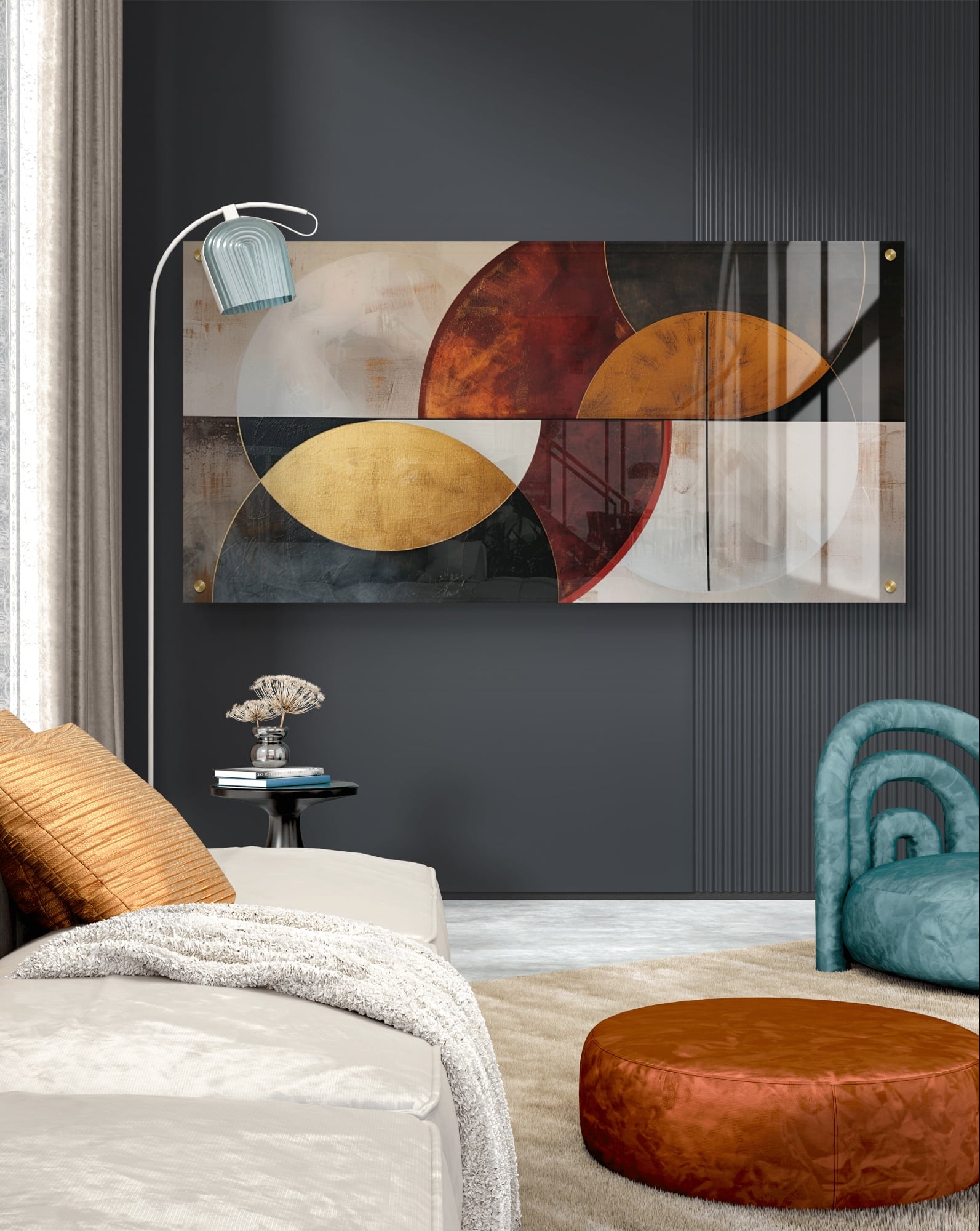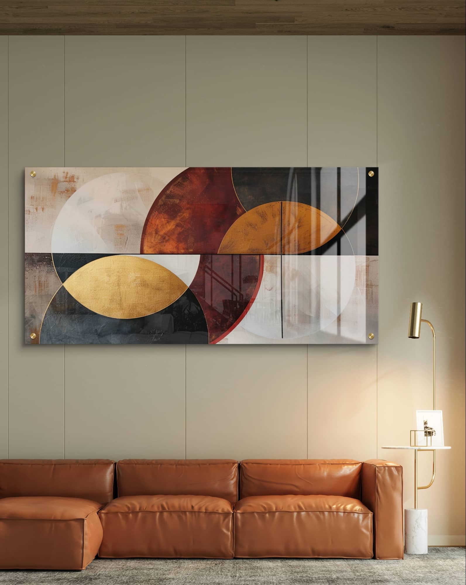 "הרמוניית מעגלים" היא יצירת אמנות זכוכית גאומטרית שתשדרג כל חלל במגע של יוקרה ומודרניות. הצבעים העזים של שמנת, אדום וכתום משתלבים בהרמוניה ליצירת אווירה חמימה ותחכום. מושלמת לסלון, חדרי עבודה ומשרדים, התמונה מעניקה תחושת רוגע ומוסיפה נופך אמנותי מודרני לכל קיר.