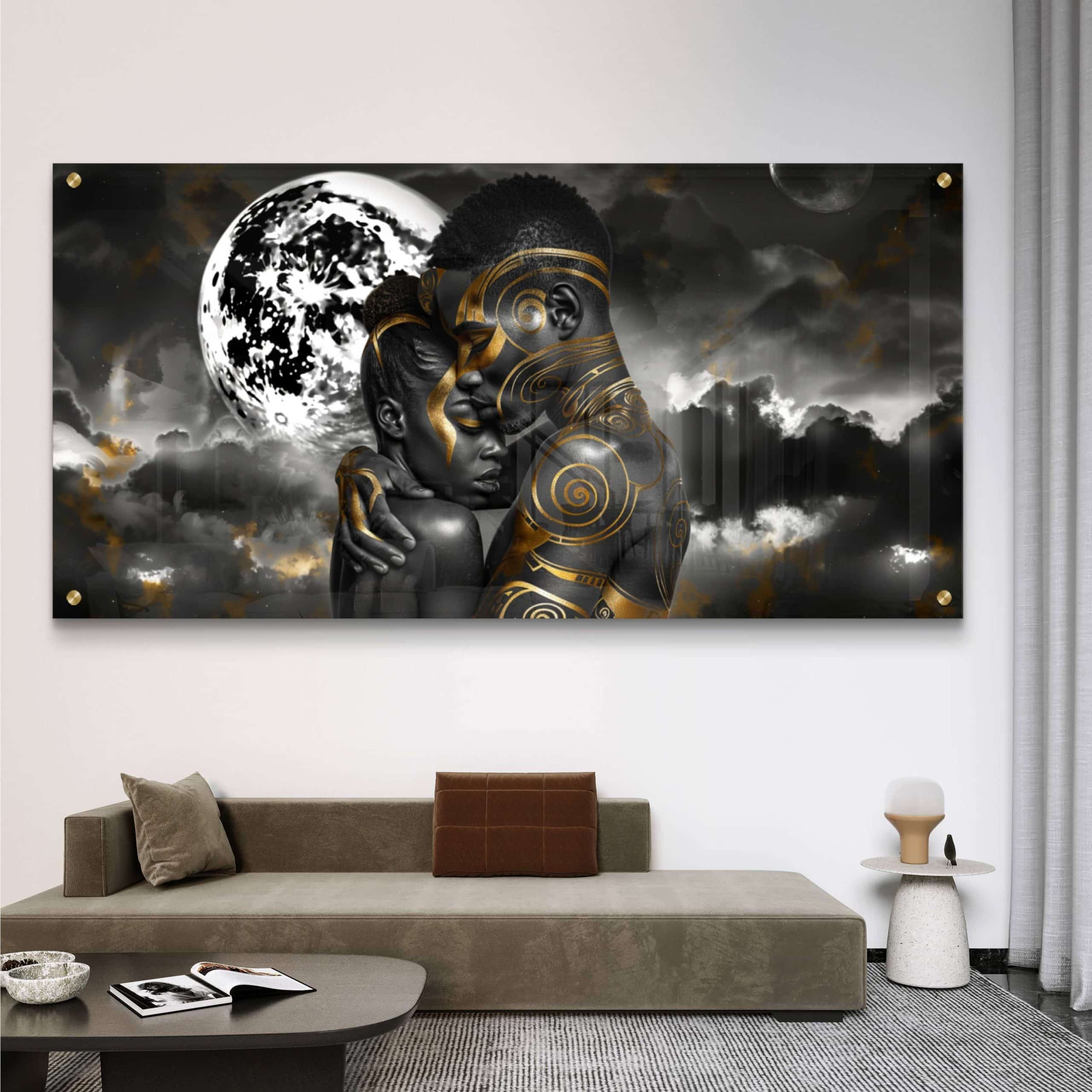 תמונת הזכוכית "חיבוק ירח" היא יצירת אמנות עכשווית המשלבת בין אלגנטיות לרומנטיקה. בעיצוב מדויק ומרשים, משלבת התמונה בין גווני שחור, לבן וזהב, ויוצרת קונטרסט מרהיב שמושך את העין. הדמות המרכזית בתמונה, המחובקת בעדינות על רקע ירח מלא, משדרת תחושה של אינטימיות וחום. הזכוכית האיכותית מעניקה לתמונה ברק ייחודי ומוסיף לעומק התחושות שהיא מעוררת.