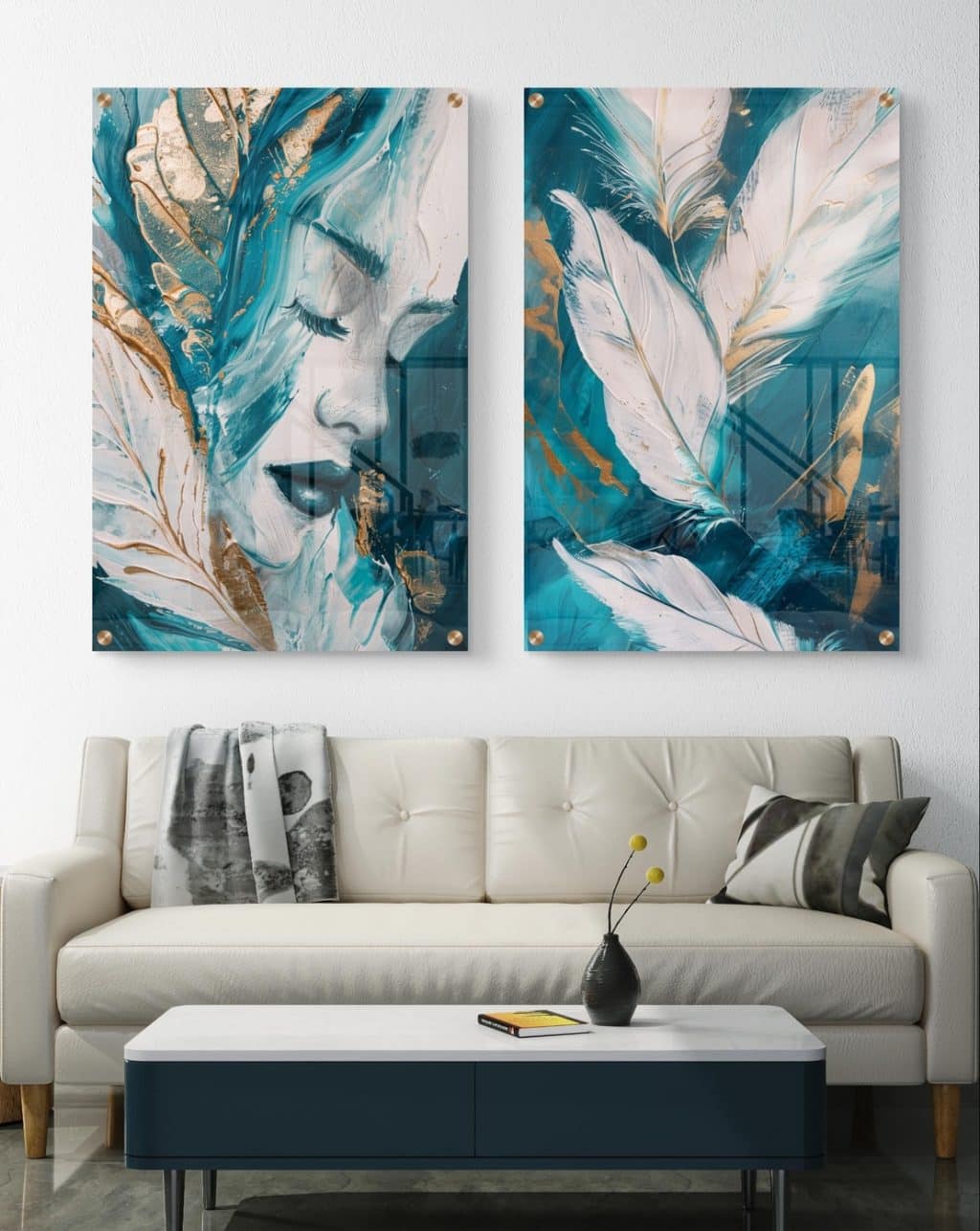 תמונת זכוכית "חלום זהוב" היא ביטוי לאמנות המודרנית, עם שילוב מופלא של צבעים ודמויות מעוררות השראה. בתמונה ניתן לראות דמות נשית רגועה, המתמזגת עם נוצות בגוונים של כחול עמוק ונגיעות זהב, מה שמעניק לתמונה תחושת עומק ושלווה. הבחירה בגוונים אלה יוצרת איזון בין קור לרוך, ומעוררת תחושת רוגע תוך שמירה על עוצמה חזותית חזקה. זוהי יצירת אומנות שמתאימה באופן מושלם לחללים יוקרתיים, כמו סלון מרווח, פינת עבודה אלגנטית או אפילו חדרי ישיבות, בהם היא יכולה לשמש כמרכז העיצובי.