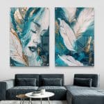 ניתן לשלב את התמונה עם ריהוט בגווני אפור, כחול או לבן, ליצירת מראה הרמוני. כמו כן, הוספת אלמנטים זהובים נוספים בעיצוב (כגון מסגרות, פסלונים או תאורה) תדגיש את הנגיעות הזהובות בתמונה ותיצור תחושת יוקרה אחידה.