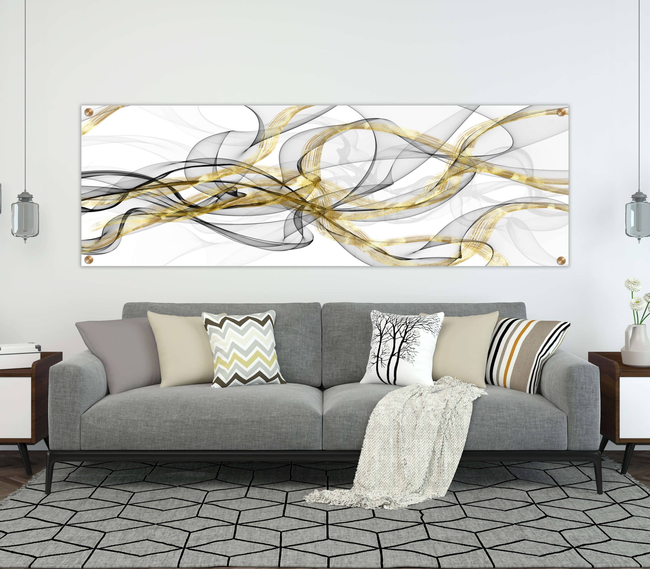 תמונת זכוכית פנורמית "ים של זהב" מציגה עיצוב מודרני ומרשים בצבעי זהב, שחור ולבן. היא מתאימה לסלון, פינת אוכל או משרד, ומעניקה לחלל אווירה יוקרתית ומודרנית. התמונה מדגישה את תחושת השלווה והאלגנטיות, ומשדרגת כל חלל בו היא מוצבת, בהוספת נגיעה של תחכום וסטייל.