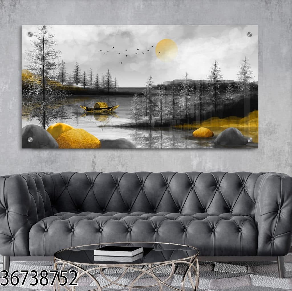 תמונת הזכוכית "מרחבי השלווה" היא יצירת אמנות ייחודית שמשלבת בין עיצוב מודרני לאלמנטים טבעיים, ומתאימה למי שמעריך עיצוב פנים יוקרתי ומיוחד. התמונה מודפסת על זכוכית איכותית, ומציגה נוף מרהיב של עצים ומים ברזולוציה גבוהה. הצבעים השולטים הם אפור וצהוב, עם נגיעות של שחור, היוצרים תחושה של עומק ושלווה. הגימור המלוטש והמדויק של הזכוכית מעניק לתמונה מראה תלת מימדי מרהיב.