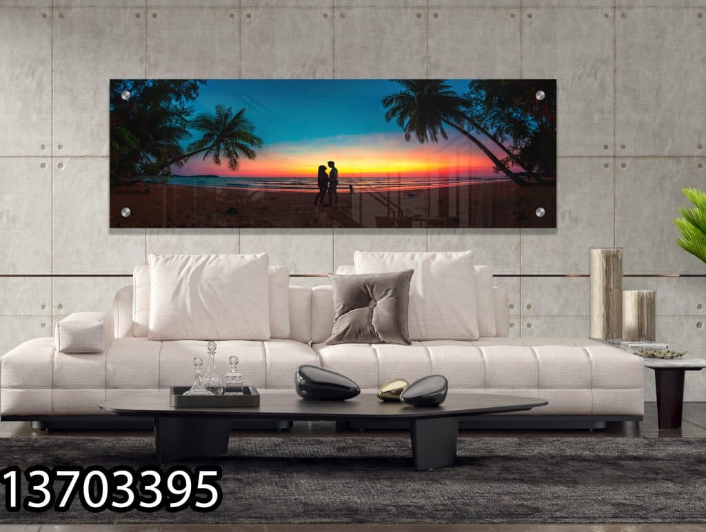 תמונת זכוכית פנורמית "רומנטיקה בשקיעה" מציגה נוף מרהיב של חוף טרופי בשעת השקיעה. התמונה לוכדת את רגע הרומנטיקה בין זוג על החוף, כאשר השמש יורדת בהדרגה ויוצרת משחקי אור וצבע מרהיבים בשמיים ובים.