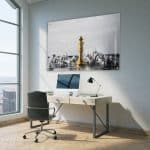 מבחינת העיצוב, התמונה מתאימה למגוון סגנונות – מודרני, קלאסי ואפילו תעשייתי. היא משתלבת בצורה מושלמת עם ריהוט בגווני עץ כהה, מתכות או בטון, ויכולה להוות מרכז תשומת הלב בחלל או להשתלב בהרמוניה עם אלמנטים נוספים.