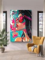 תמונת הזכוכית "תחושת רטרו בצבעים חיים" היא לא רק אלמנט עיצובי, אלא יצירת אמנות שמביאה עמה את הסגנון הייחודי של התקופה הרטרו בשילוב צבעים עזים ומלאי חיים. עשויה מחומר זכוכית איכותי, התמונה מציעה גימור מבריק ומרשים שמוסיף תחושת יוקרה לכל חדר. הצבעים השולטים בתמונה – ורוד, תכלת וצהוב – יוצרים הרמוניה מושכת שמושכת את העין ומשדרים אווירה חמה ותוססת.