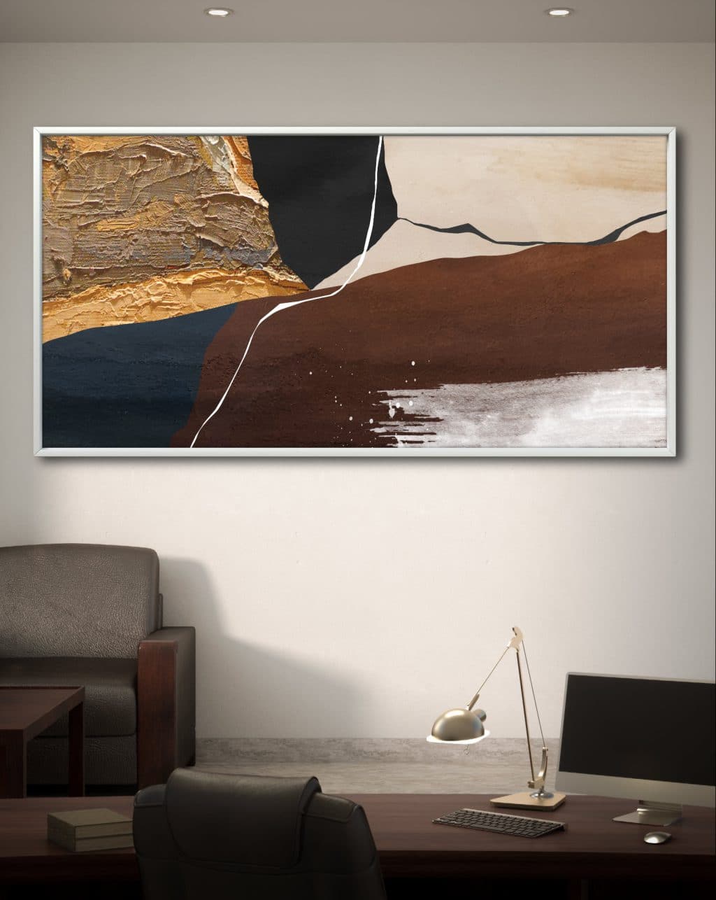 הדפסה איכותית על קנבס עמיד, עיצוב עשיר בטקסטורות שמתאים למגוון חללים, ומשדר עומק וחמימות.