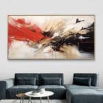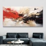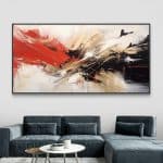 תמונת הקנבס "הרמוניה של תשוקה" מעבירה תחושה של חום ותחכום לכל חלל בו היא נמצאת. שילוב הצבעים האדומים, כתומים ושחורים על רקע שמנת יוצרים תנועתיות חיה ונמרצת, המעשירה כל סלון, משרד או חדר עבודה. התמונה משתלבת באופן מושלם בבתים המעוצבים בסגנון מודרני או גאומטרי, ומביאה עמה אווירה יוקרתית ומודרנית.