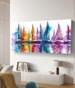 תמונת הקנבס "מפרשי הרמוניה" היא תמצית האמנות המודרנית והיוקרתית. התמונה מתאפיינת בקווים גאומטריים נקיים ושימוש בצבעים חמים ומזמינים כמו שמנת, אדום וכתום, המעניקים תחושה של חמימות ורוגע לכל חלל. נוכחותה בחדר יוצרת מראה מתוחכם ומודרני, המתאים במיוחד למעצבי פנים ואדריכלים המחפשים להוסיף נגיעה של יוקרה ועומק.