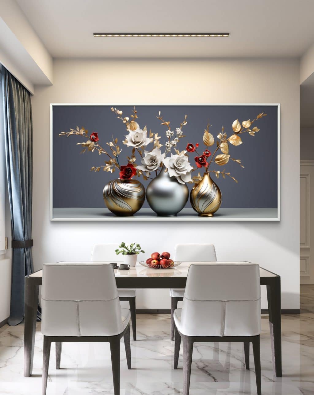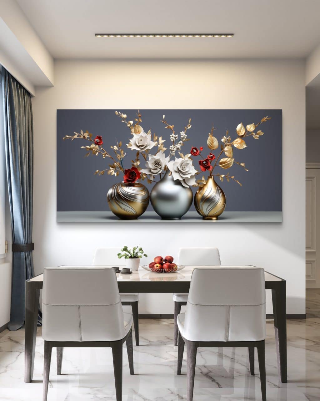 התמונה עשויה מחומרים איכותיים ועמידים, קלה לניקוי ומעניקה לחלל תחושת יוקרה ורוגע. היא משדרת תחכום וחדשנות בעיצוב המודרני.