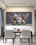 תמונת הקנבס "פריחת האמנות" מציעה שילוב מושלם של צבעים חמים ונגיעות מודרניות. עם גוונים של שמנת, אדום וכתום, היא מביאה תחושת חמימות ורוגע לכל חלל. האמנות הפרחונית משתלבת נהדר בסלון, בחדרי שינה או במשרד, ומעניקה תחכום מודרני ויוקרה לכל סביבה.