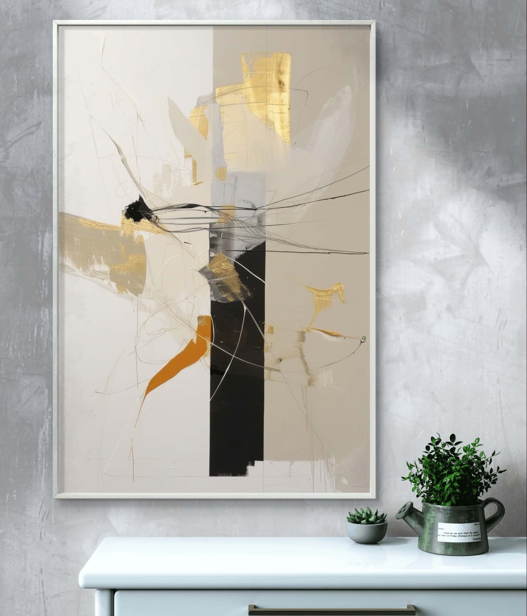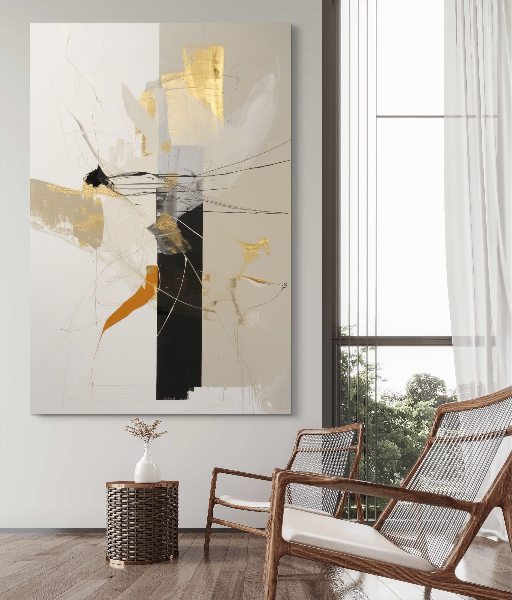 תמונת הקנבס "רקיעי זהב" היא יצירת אמנות עוצרת נשימה המשלבת פלאי צבעים וחושים בצורה הרמונית. צבעי השמנת, האדום, הכתום והשחור משתלבים יחד ליצירת חוויה ויזואלית מרגשת ומלאת חיים. המוצר מתאים להפליא לסלון, לחדרי שינה ולמשרדים, משדרג כל חלל בקסם של חמימות, רוגע ותחכום. התחושה המודרנית והחמימה שהקנבס מעניק לחלל יוצרת סביבה מזמינה ומעוררת השראה.